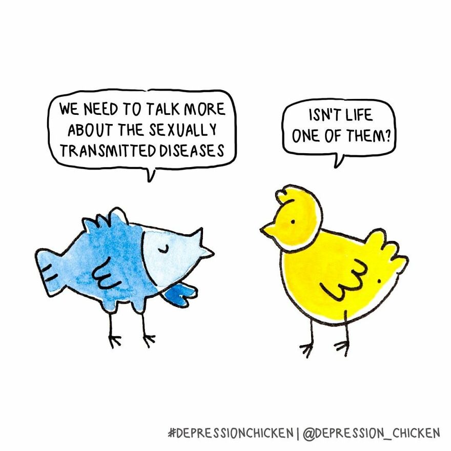 I'm Adam, I'm a Polish social media manager living in Berlin and three years ago, I started drawing comics about depression chicken and its friends.