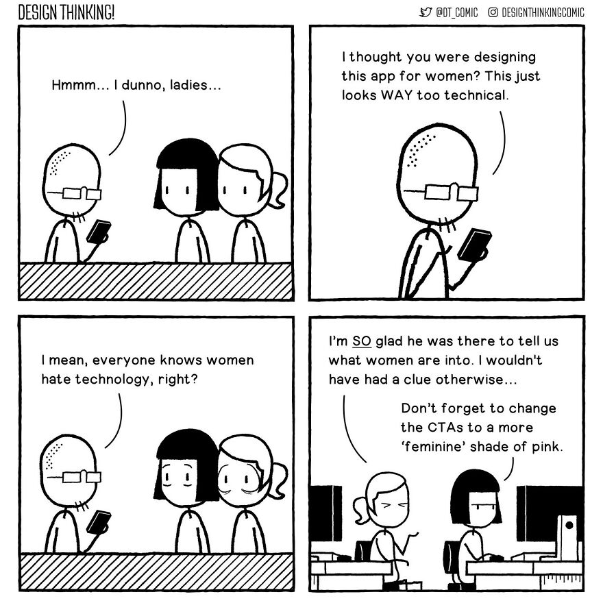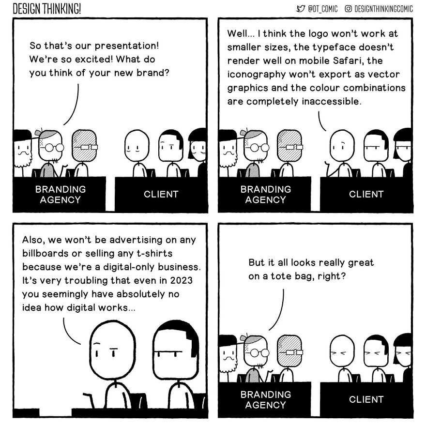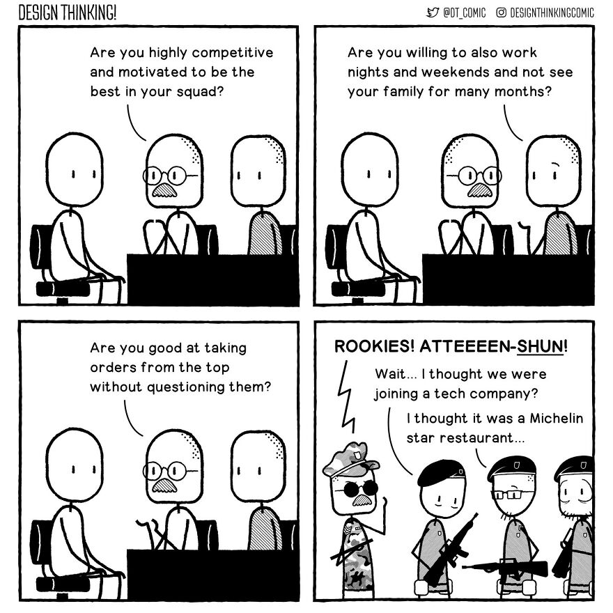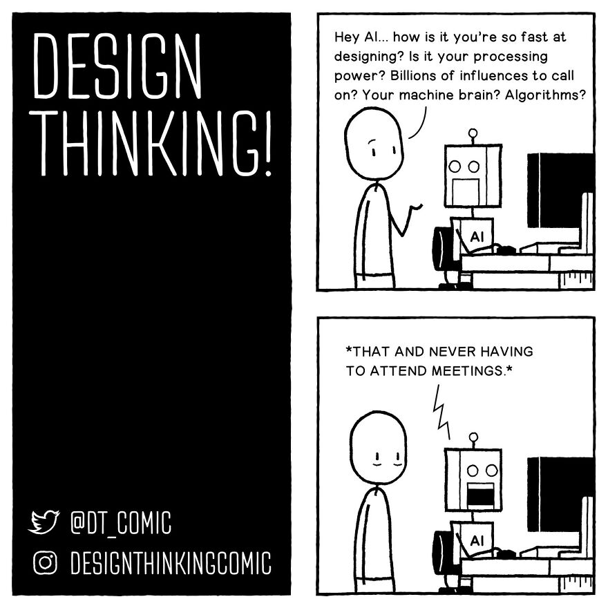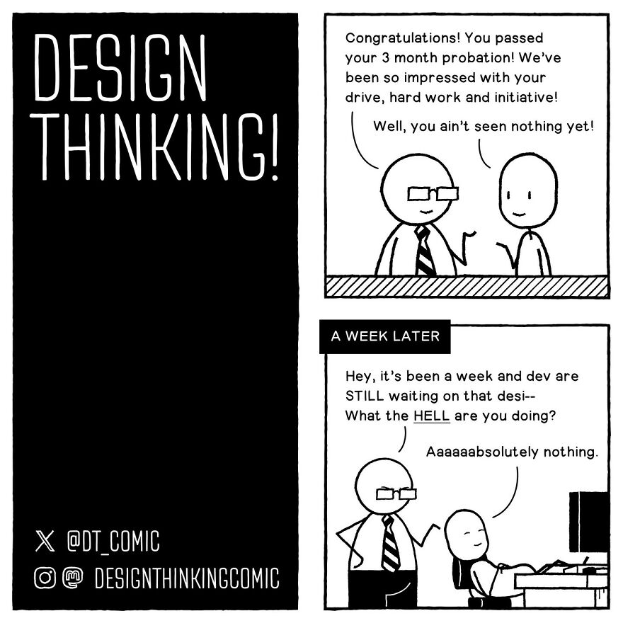 Bored Panda got in touch with the creator of the DESIGN THINKING! Comic once more. We were interested in learning if there are any themes or characters in the comics that the artist prefers to work with, or that the audience likes the most. "Probably the main recurring theme people connect with is the frustration with how things can be at work, which is a pretty universal issue," they replied. "But I think the ones that feel the most satisfying for me are when I get to talk about my own deeper concerns I'm usually too afraid to admit to, and then see that resonate with other people too. It's nice to know I'm not the only one struggling with more personal problems."