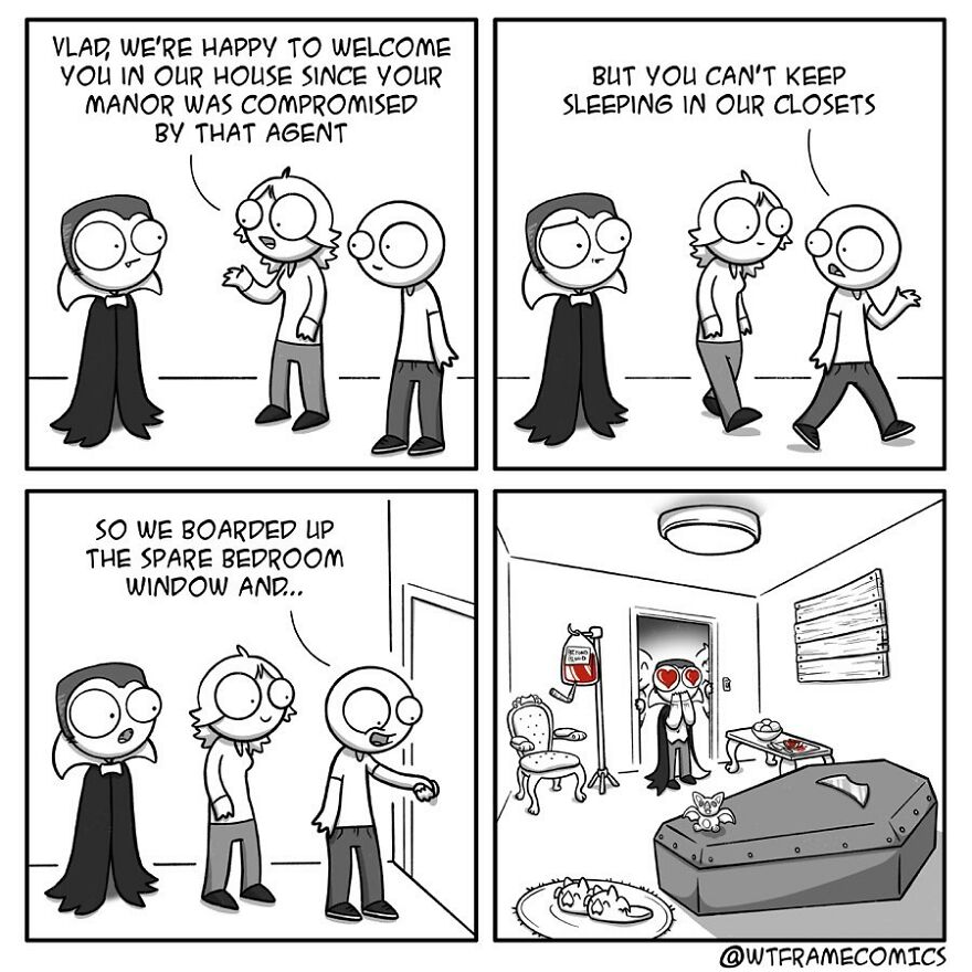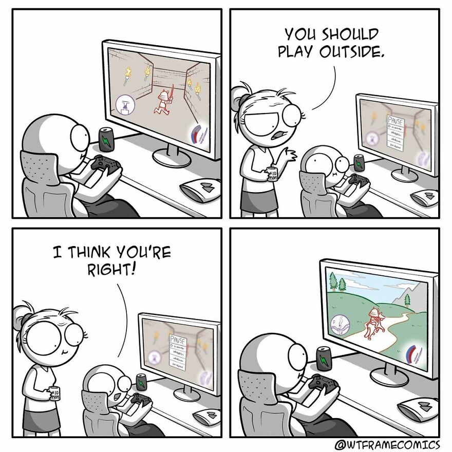 In April 2018, together with his wife, Jean-Nicolas Bourdon started "Aspigurl", which is now "Lily Spectrum" and about six months later, "WTFramecomics" was created. The artist revealed that once he has a complete idea, it takes him from 1 to 4 hours to finish a comic. Being asked how he comes up with ideas, Jean-Nicolas told Bored Panda that he doesn't really have a method or anything. "But having ADHD, I'm constantly having random thoughts and making associations, so I guess this plays a big role in my process."