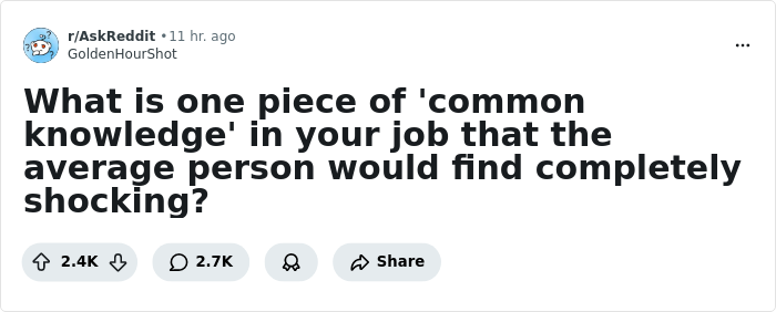 They can no longer imagine seeing the world from a beginner's perspective. This is the reason so many professionals in the online thread were genuinely shocked by what the public doesn't know. To them, it's just a normal Tuesday; to us, it's a mind-blowing secret.