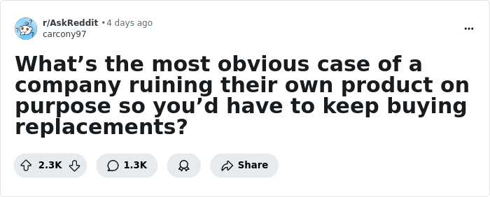 The question clearly hit a nerve, as the floodgates opened with a deluge of responses. From fragile phones to appliances engineered to break, people shared their most frustrating stories of “planned obsolescence,” and we've compiled the most infuriating examples.