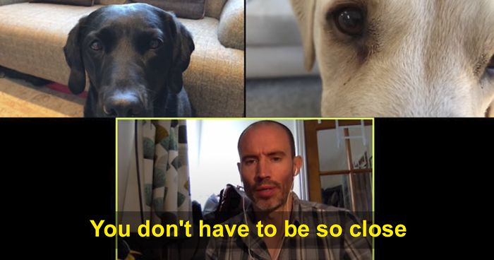 BBC sports broadcaster Andrew Cotter has delighted the Internet with a parody Zoom call that featured his two adorable Labradors