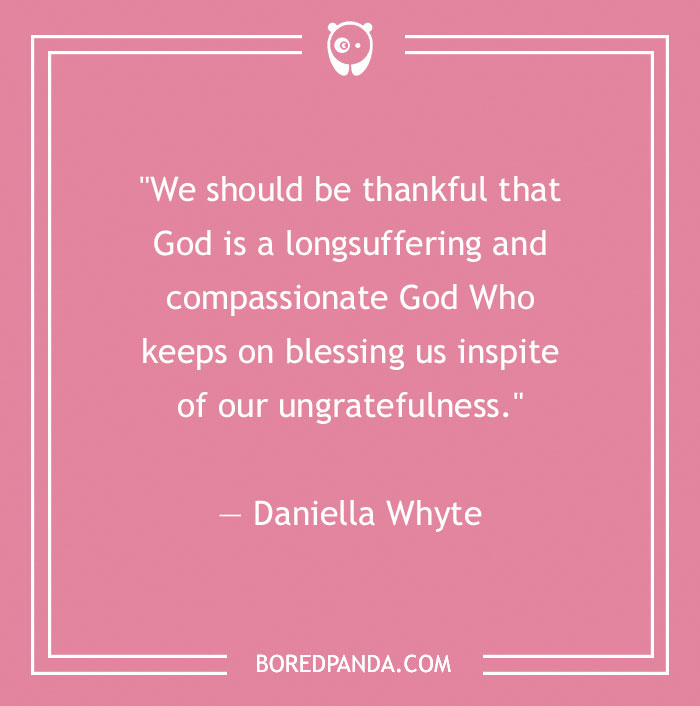 "We should be thankful that God is a longsuffering and compassionate God Who keeps on blessing us inspite of our ungratefulness." — Daniella Whyte