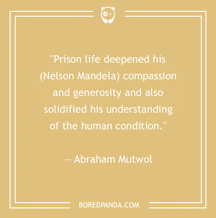 "Prison life deepened his (Nelson Mandela) compassion and generosity and also solidified his understanding of the human condition." — Abraham Mutwol