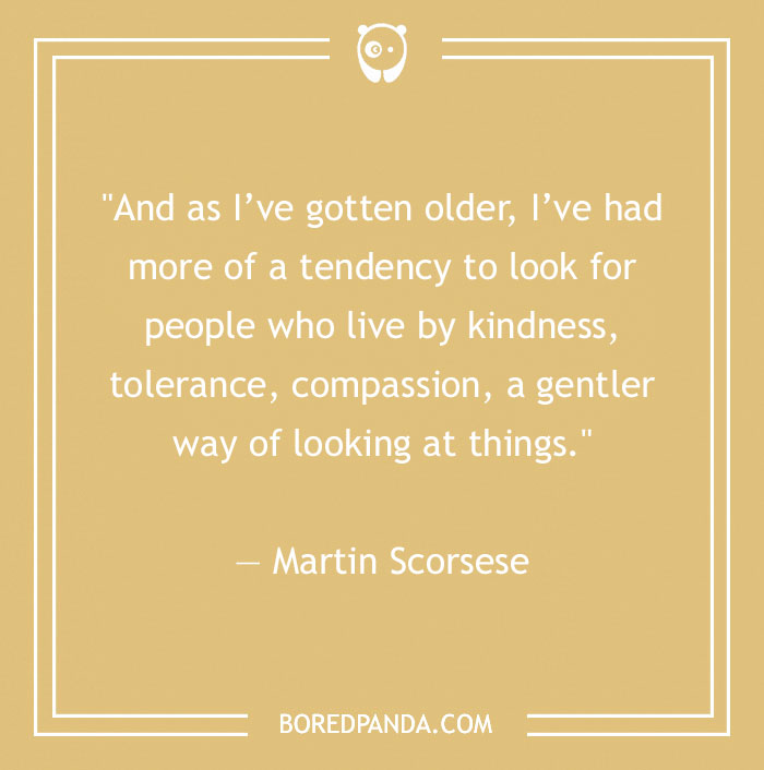 "And as I’ve gotten older, I’ve had more of a tendency to look for people who live by kindness, tolerance, compassion, a gentler way of looking at things." — Martin Scorsese