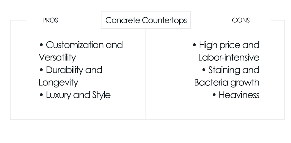 - Luxury and Style. These countertops are premium and stylish. Concrete is considered a high-end material that can improve the resale value of your home.