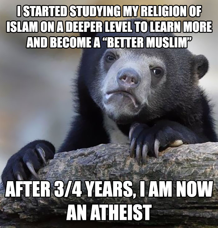 When I got accepted into law school, I felt "blessed" and I felt that I needed to learn more about Islam and the Quran to serve Allah better as a good Muslim and a good citizen. I grew up in Afghanistan until I was 13. During the Taliban, I learned to read the Quran at school and at the local mosque, but we were never taught the meaning of the Quran. So, when I stared learning the meaning of the Quran here in the US, I started to question it. I started learning about other religions and ended up reading the Bible and learning about Christianity and Judaism as well. The more I learned about religion, the more questions I had. I have read books on both sides of the arguments for and against religion, I have watched lectures and debates and I have spoken to priests and mullahs. I have also read Richard Dawkins and Christopher Hitchens. Also, evolution is apparently a thing that religion loves to hate. I was actually disappointed that I arrived at nothing at the end of it all. I concluded that religion is man-made and there's as much proof for God's existence as there is for a unicorn or a teapot in the sky as Richard Dawkins likes to put it. My family and relatives are devout Muslims and I know that many would be disappointed, to say the least, when and if they find out I have turned away from Islam. For a Muslim to become an atheist is the biggest step that you can take in your life. It is a decision that will arguably alter the rest of your life. I could lose many or all of your family and relatives. If i was still living in Afghanistan, the punishment without question would have been death. I know that i will lose many loved ones, but i honestly don’t know how long more i can pretend and keep it to myself. End of rant. Thank you for reading my story.