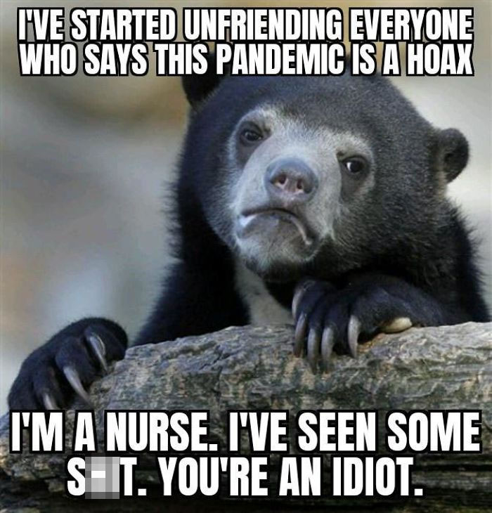 Hold your [friggin] opinion. Put the piece of GD fabric over your mouth (and no, not mesh you absolute imbecile) and wash your dirty little hands. It is LITERALLY the simplest task we could do to protect someone other than ourselves.