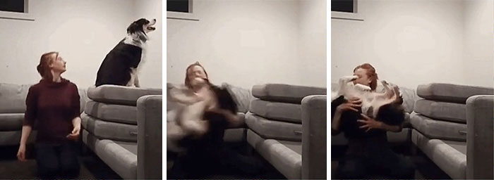 When my cat was younger he would randomly jump at me from furniture as I was walking by expecting me to catch him. I only missed once. He continued even after that though.