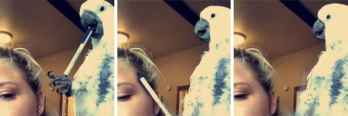 Birdie Copying The Way Her Person Chews And Taps On Her Pen