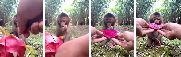 Waiting Patiently Until The Fruit Is Cut And Then Letting The Human Take A Bite Before Eating