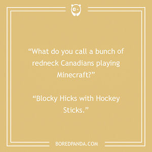 What do you call a bunch of redneck Canadians playing Minecraft? Blocky Hicks with Hockey Sticks.