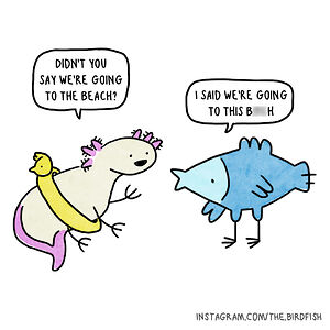 I started with comics to better represent how I feel and to deal with my depression. My protagonists are Depression Chicken and his buddys Birdfish and Aleksiklotl and many others.