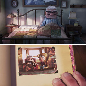 In "Up" (2009), Ellie's Things Are Rounded While Carl's Things Are Square, Matching Their Respective Character Designs