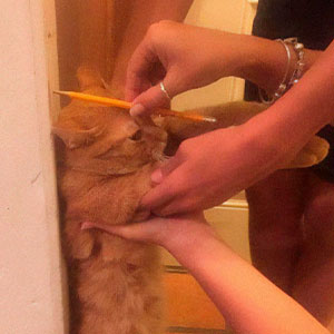 She recovers well (held her in my arms). I put her in the cage and set off down the hall to see some walk in rooms in the meantime. Two hours later and I check up on her. Vitals great, in good spirits, but that d**n leg is sitting backwards at the knee AGAIN. In puzzlement, I ask my mentor what I should do. He tells me to flex the knee manually again. I asked if that was safe, to sedate her again so soon. He told me to do it without sedation.