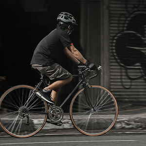 Cyclist flipped me off because I wasn't sharing the road enough, despite the cycling lane to his right, and in doing so, rides into a pothole and bent his front wheel.