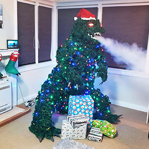 Guy Used Household Items To Build A Magnificent Smoke-Breathing Godzilla Christmas Tree