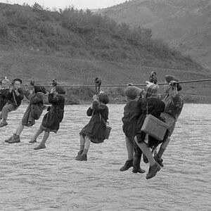 Children Cross A River Using Pulleys On Their Way To School In The Outskirts Of Modena, Italy, 1959, Technically Uphill Both Ways