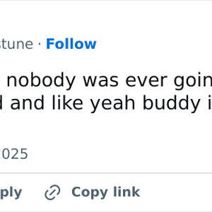 I stare at her. She stares at me. Finally she breaks down wailing. "I don't know! I don't know, okay, we've just been waving at each other for two years and it was too late to ask!"