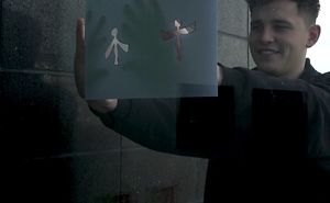 Life-Size Animated Cardboard Cut-Out Person Really Runs Round A Town. Its Head Is Changing Photos Of People Who Helped Make It Happen Who Live Here.