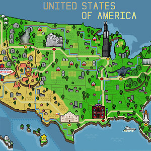 I Made A Retro Pixel Map Of The USA! Tried To Include Some Of The Iconic Monuments/Locations That Resonated With Me