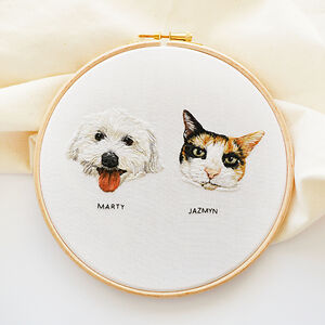 I'm the UK based artist behind The Artist's Lab. I make both embroidered pet portraits and beginner friendly embroidery patterns so you can either make your own embroidery hoop art or get the finished thing.