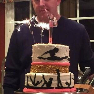 My Husband Presenting The “Gymnastics” Themed Birthday Cake To Our Daughter But The Cake Looks More Like A Party Cake For A Private Club