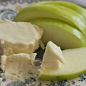 Green (Granny Smith) apples and (sharp) cheddar cheese