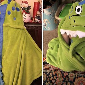 Your Couch Can Now Be A Prehistoric Landscape Roamed By The Laziest, Most Comfortable Predator Of All Time With This Dinosaur Hooded Blanket