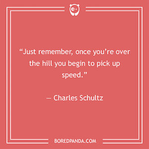 “Just remember, once you’re over the hill you begin to pick up speed.” — Charles Schultz
