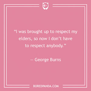 “I was brought up to respect my elders, so now I don’t have to respect anybody.“ — George Burns