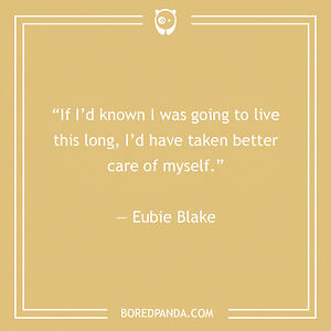 “If I’d known I was going to live this long, I’d have taken better care of myself.” — Eubie Blake