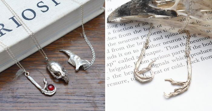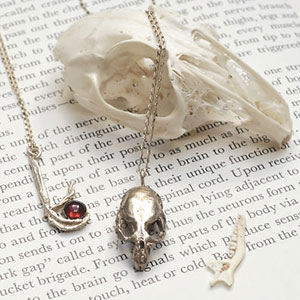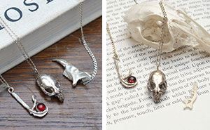 Fascinated by nature and beauty in the macabre. Bethany creates intricate Jewellery with a punk influence and some floral work cast directly from natural objects such as bones, insects and seed pods. She combines extensive mould making processes with lost wax investment casting to materialise three-dimensional, intricately detailed works unusual in the handmade market. Her work is predominantly sterling silver cast items including some set stones