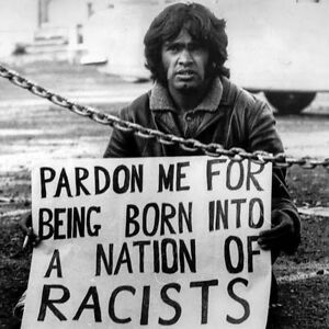 An Iconic Image Showing Aboriginal Rights Activist, Gary Foley With A Sign Reading, “Pardon Me For Being Born Into A Nation Of Racists”, 1971