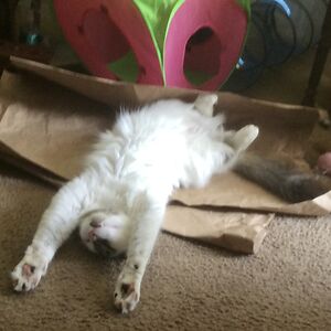 Farrah Collapsed In A Deep Sleep On My Lap Just After Destroying His Business' Ball Pit, Flooding My Living Room With 400 Plastic Balls