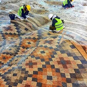 One Of The Largest Roman Mosaic Floors Was Discovered During The Construction Of A Hotel In Antakya, Turkey. The Warping Effect Was Caused By The Earth Shifting Over Time And Earthquakes, Giving It The Impression Of A Giant Rippled Blanket