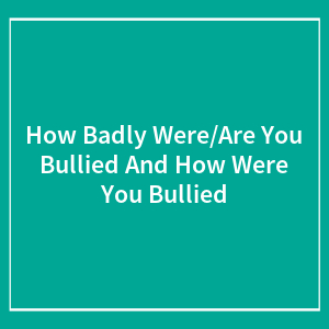 at school or at home? at school the usual kindergarten and elementary and middle and high school I'd say the worse one was: first (and thus only) day of college I came early not to get lost to see the surroundings where I needed to go etc not to get lost in the parisian subways I wasn't used to; I came very early it was still dark I didn't know the school I got cornered an ***** by four boys I didn't go to this college after that for several reasons I got yelled at and more by my father for droping school something I usually don't do (really I'd rather be at school, plus it's not like me to skip) I just went somewhere else without too much drama from the rest of my family ; who really treated it like it was normal for me to drop and leave even though I've never been like that..Show All 28 Upvotes