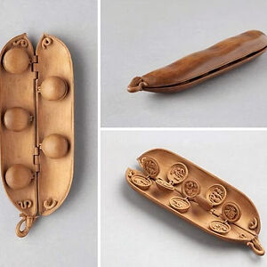 This Tiny Boxwood Peapod (10 Cm) Was Carved In C. 1500 By A North German Artist. It Opens To Reveal Little Peas, And Then Those Peas Open To Reveal Ten Little Carved Scenes From Genesis