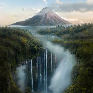 You Might Have Seen It Before, But Here's That One Place In Indonesia With A Volcano Behind Waterfalls