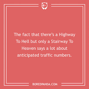 The fact that there’s a Highway To Hell but only a Stairway To Heaven says a lot about anticipated traffic numbers.