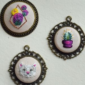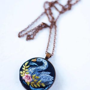 Hi, I’m Yulia. I’m an embroidery artist based in Cleveland, Ohio. I started embroidering a year and a half ago and fell in love with it right away. I’m inspired by nature and animals. In addition to original pieces, jewelry, and pet portraits, I also make custom ultrasound embroidery. You can find me on Instagram @mossandfeather to see more of my work!!