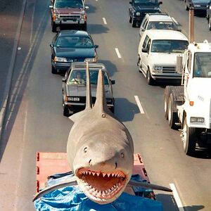 Flashback To 1988 When A 25-Foot Shark From "Jaws" Rode Through Boston En Route To The Museum Of Science To Be Part Of A Science Of Movie And Television Magic Exhibit
