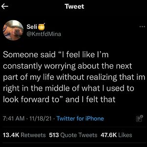 This For Me Rings So True…i Am Constantly Looking Forward That Sometimes I Get Myself Worked Up Over Things That Haven’t Even Happened. I Don’t Even Give Myself Credit For What I’m Doing Now And The Things I’m Doing Now. I Am Working On Being More Present That’s For Sure….watching My Daughter Grow Into This Beautiful Human Reminds Me That Time Never Stops And I Have To Enjoy The Now. I Hope Everyone Has A Beautiful Day. - @tanner_hamilton22 . . . 📸 = Kmtfdmina On Twitter . . #anxiety #depression #dontforgettostaypresent #yougotthis #asafeplaceinsideyourhead #youareenough #youarenotalone #keepgoingyougotthis #howamazingareyou #pleasekeepcrushingit