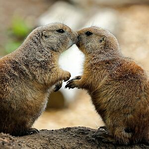 Prairie dogs greet each other by kissing. This behavior allows them to know who their family members are and helps them to avoid interactions with strangers.