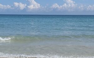 A family kickball game at the swimming spot. Aunts, uncles, cousins and grandparents.