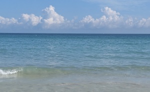 A family kickball game at the swimming spot. Aunts, uncles, cousins and grandparents.