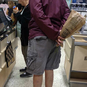 We Were In A Long Line At The Grocery. This Man Said He Had To Go Use The Restroom, But Instead He Secretly Bought Flowers For His Wife And Hid Them Behind His Back