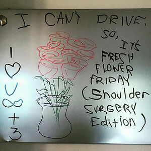 My Husband Had Rotator Cuff Surgery Yesterday. I Found This On Our Whiteboard This Morning And He Must Have Wrote It With His Non-Dominant Hand
