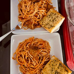 It's Not Much, But My Best Friend Cooked Us This Meal So That I Would Eat Something After A Few Days Of Depression-Nesting. Some Days You Just Need Spaghetti, Garlic Bread, And A Great Friend