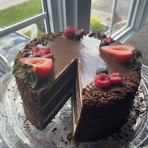 I Made My Birthday Cake! Its A Chocolate Espresso Cake With A Chocolate Cremeux, Espresso Swiss Meringue Buttercream, And A Dark Chocolate Glaze!